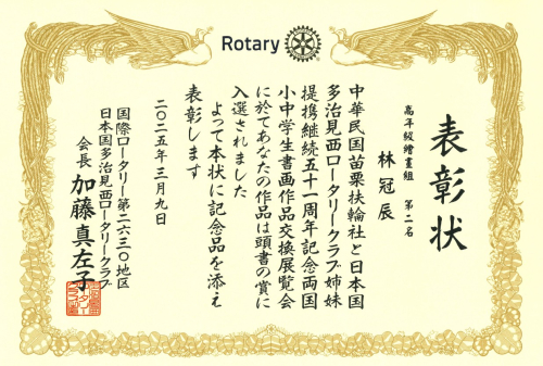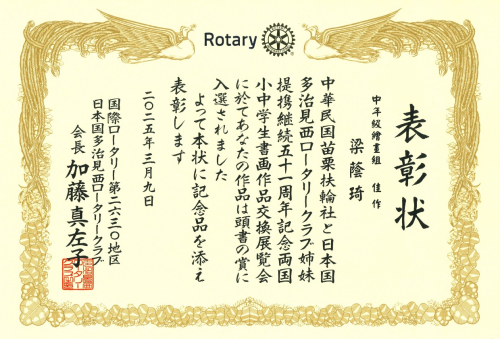 苗栗扶輪社2024-2025年度台日小學生書法繪畫交流獲獎作品及獎狀