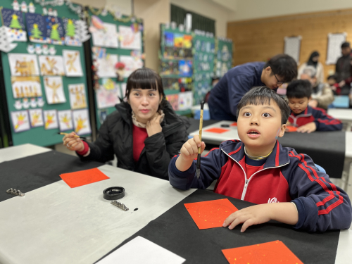 ✨苗栗縣外埔國小舉辦親子共寫春聯活動,師生與家長齊聚一堂,共同揮毫體驗濃濃年味與書法之美。活動同時開放「外埔藝廊」,邀請家長欣賞孩子們精心創作的藝術作品,展現學校豐富的藝術學習成果,歡迎一同感受溫馨又有創意的新年氣氛!
