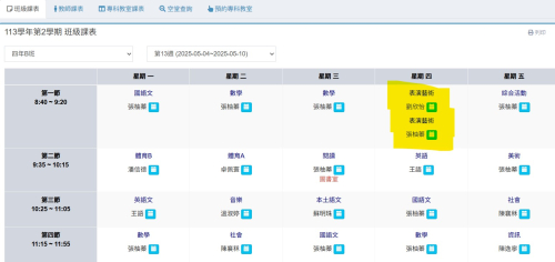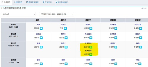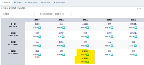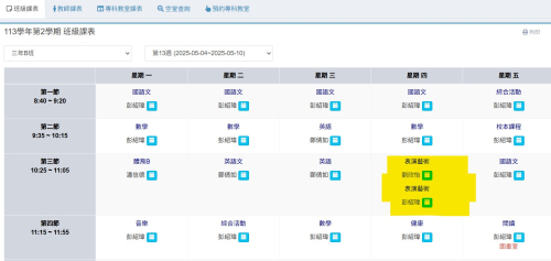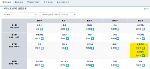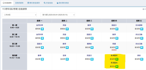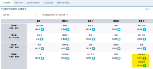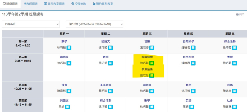 | 第一節 | 1年C班 協同教師:廖淑惠老師 | 2年B班 協同教師:吳佳琪老師 | 4年B班 協同教師:張柚蓁老師 | ||