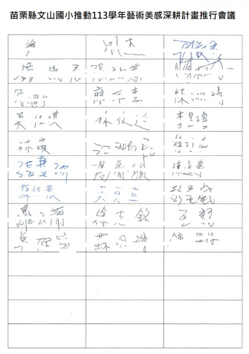 苗栗縣文山國小推動113學年藝術美感深耕計畫推行會議紀錄