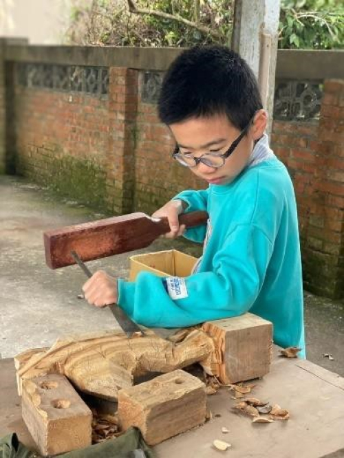 程。從一塊粗糙的木頭到完成一件屬於自己的作品,這過程不僅讓我學到技術,更讓我感受到與木頭對話的樂趣。以下是我以課程中的體驗,對木雕的五點心得。 首先,在技術學習上,課程從基礎刀法開始教起。一開始,我連握刀的姿勢都不太對,總是擔心用力過猛會傷到自己或木