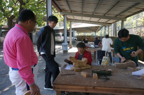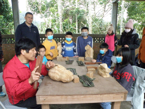 外聘師資在學校專業協作: 1.協同老師與藝術家於教師研習時學習先備技藝, 並與藝術家討論本 學年將實施的課程內容。 2.協同老師與藝術家在下課後討論木雕教學需要學校配合與練習的部分。 3.與藝術家討論教案如何編寫。 4.與藝術家討論年度創作展作品擺設安排位置、教導學生雕刻作品保存方式。