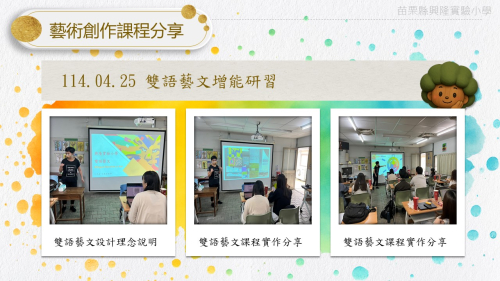 為了讓這份信念扎根,學校積極舉辦各式教師增能活動,讓老師們在藝術的沃土中不斷成長與蛻變。我們不怕挑戰,勇於嘗試,把一堂堂課打造成探索與感動的旅程。從繪畫、戲劇到跨域創作,興隆實小的實驗課程充滿驚喜,也讓孩子們在過程中學會表達、傾聽與想像。
