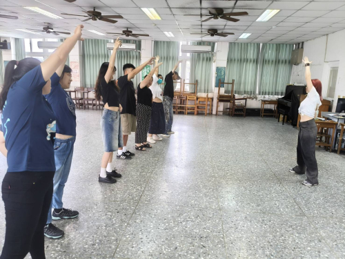 暖身:肢體延展、柔軟度練習 樂曲舞蹈練習 |