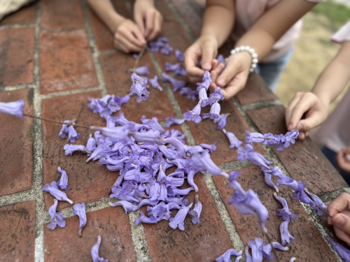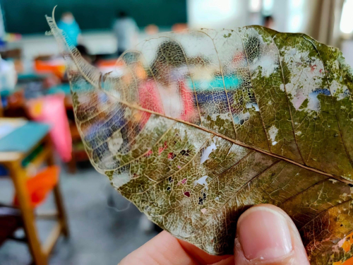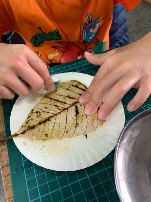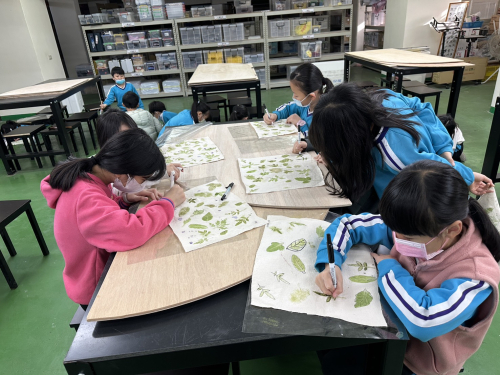 中年級的學生們走入校園植物世界,透過觀察、拓印、拼貼與造型創作,用雙手記錄植物的形態與故事,並搭配節氣茶席體驗,體會茶藝、器物與生活之美。