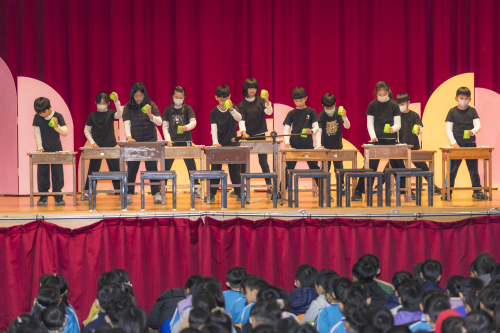 低年級的孩子們從音樂律動出發,在肢體遊戲與創意表演中探索節奏與表達,搭配導師與舞蹈教師協同帶領,發展出屬於這個年紀的自然律動與舞台自信。