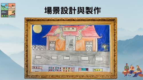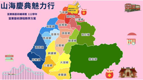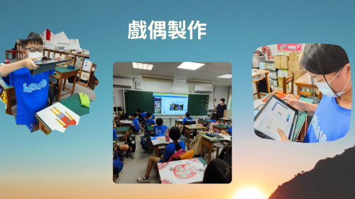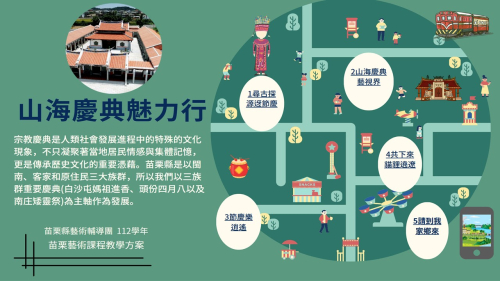 ★表演藝術:本校3-6年級每週一節表藝課,由戲劇專長教師進行授課,內容多元,激發學生想像力與藝術創造力,透過表演展現自信心。112-113學年度進一步與苗栗縣藝術輔導團合作「山海慶典魅力行」課程方案,以白沙屯媽祖進香、頭份四月八、南庄矮靈祭為課程發展主軸,本校負責頭份四月八的部分,除了傳統元素之外,亦加入現代AI進行創作。