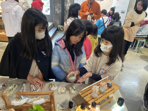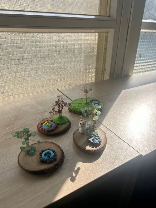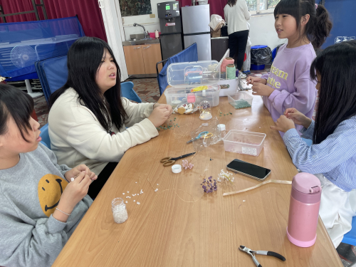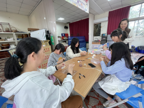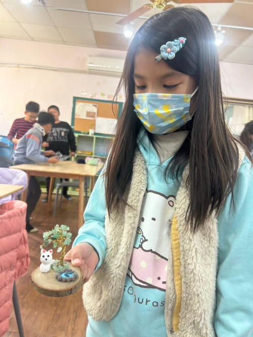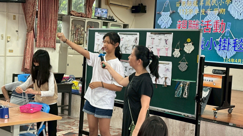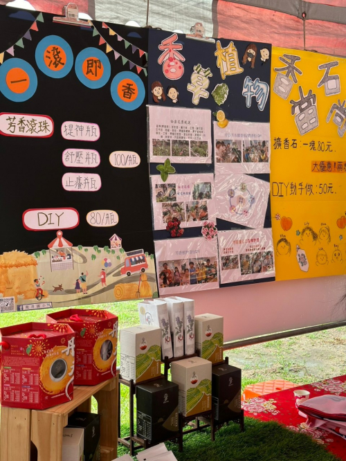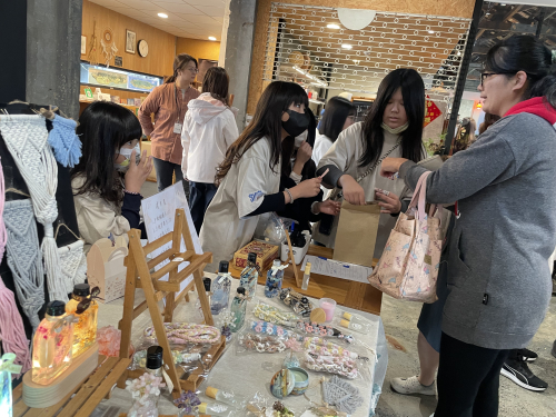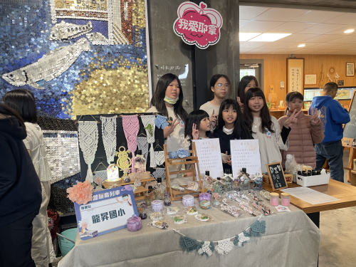 說明:114年3月29日配合苗北實驗教育座談活動,學生將所學水晶樹、編織掛繩、乾燥花擴香石等成果展示並透過販售了解成本與行銷概念。