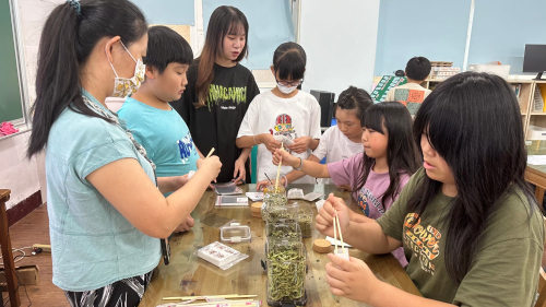說明:113年7-8月辦理夏日樂學暑期營隊9周活動,參觀花露農場、木匠兄妹、銅鑼製茶廠等,體驗花草茶包製作、藝術時鐘、木工藝術與彩繪燈等課程。