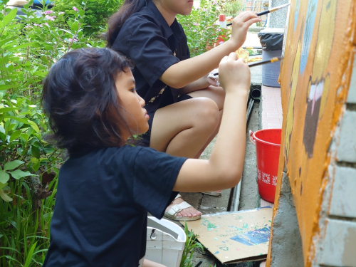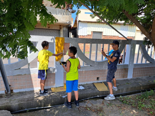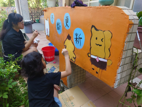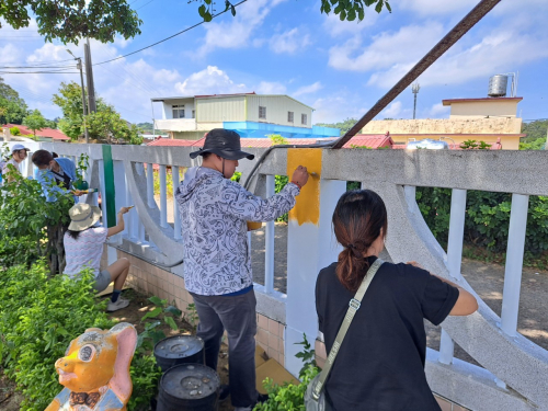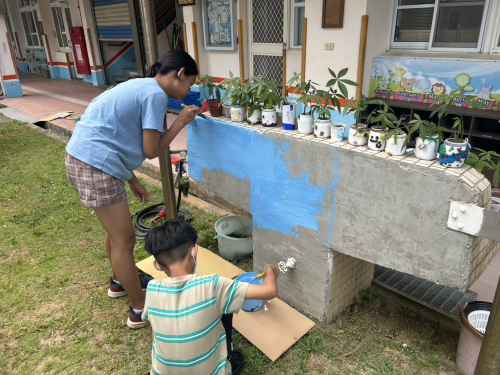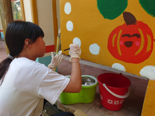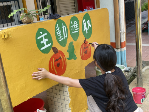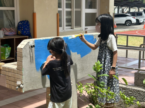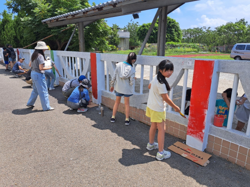 說明:圍牆彩繪,鈺創科技志工入校進行校園SDGs校園國際化圍牆彩繪。