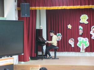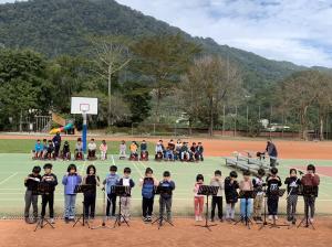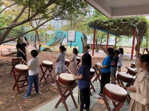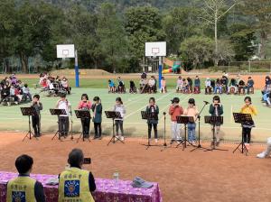 結合課程發表成果-運動會舞蹈及太鼓表演、東海扶輪社到校學生表演口琴吹奏
