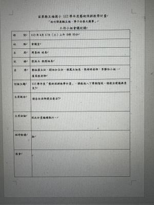 苗栗縣112學年度教育部國民中小學藝術深耕教學計畫