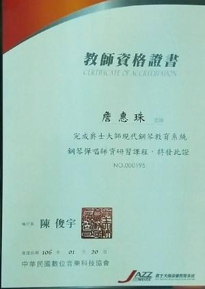 (3)完成爵士大師現代鋼琴教育系統鋼琴彈奏師資研習課程。
