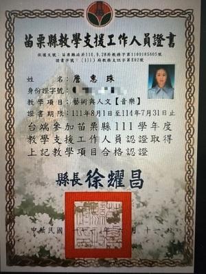 (2)111學年苗栗縣藝術與人文教學支援工作人員。
