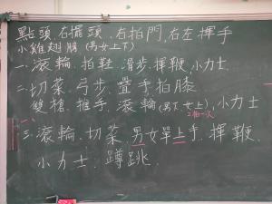 暖身:肢體延展、柔軟度練習 基本步伐:轉、踏點步、輪步 |